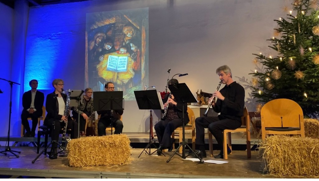 Und damit es immer was zu Spielen gibt und nicht langweilig wird, habe ich mit dem langjährigen Klarinettenquartett wieder zur Christnacht in Benningen gespielt; dieses Jahr in der Alten Keltermit unserem neuen Pfarrer Simon Englert und mit meiner neuen Bassklarinette! Und einige Wochen vorher hatten wir noch ein Konzert in Tübingen.